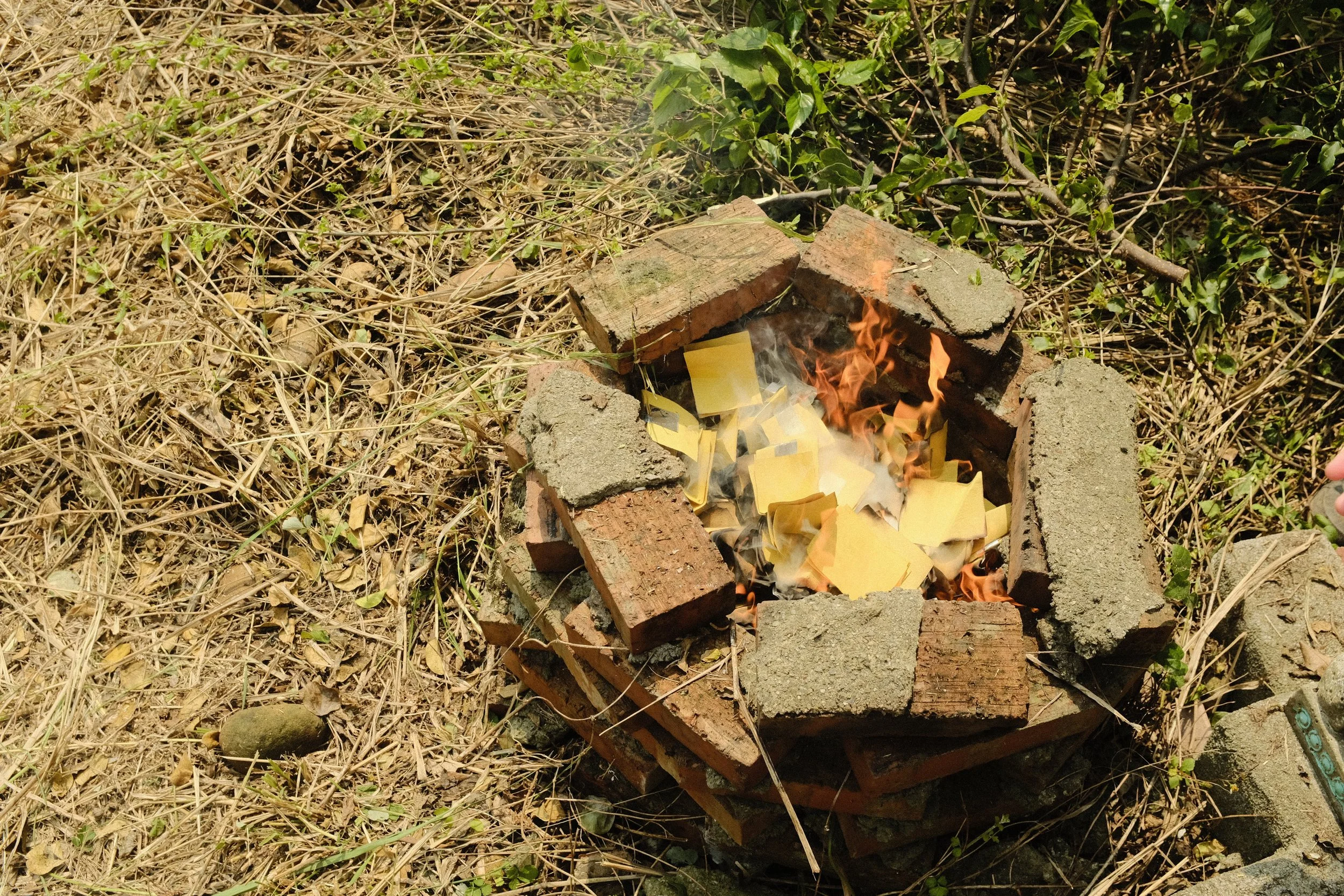 A small fire is burnt in front of the tomb once each of the tasks have been carried out, this is often a time to connect with ancestors and deliver words of remembrance to those that come before you. Joss paper is burnt as offerings to symbolise money for those in the afterlife.